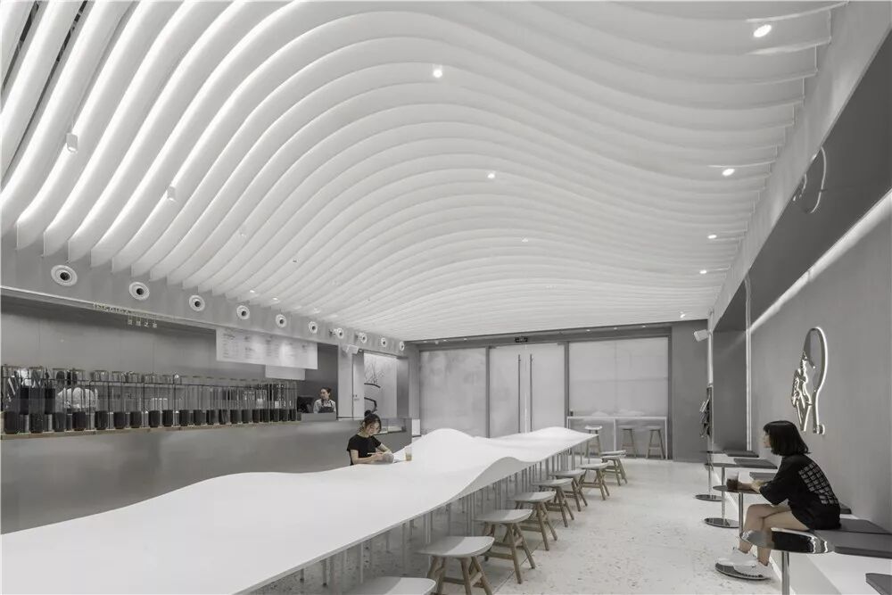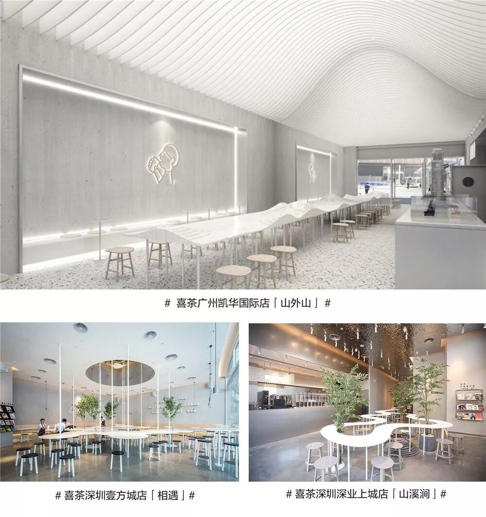 上面提到的三家DP店,結合茶的特性,將禪意、美學、極簡等元素融入到設計當中,以符合喜茶品牌調性的手法,將東方美學以更符合現代審美的方式呈現出來,這跟最近在茶飲店悄悄興起的具有東方韻味的設計風格不謀而合。而設計中蘊含的對於茶飲空間中社交延展可能性的思考和探索,為空間本身賦予了更多的現實意義。